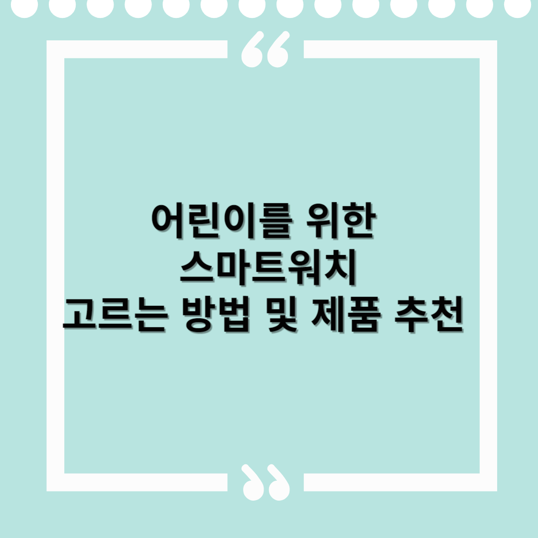 - 어린이 스마트워치 추천 TOP 4 (2025년 기준)