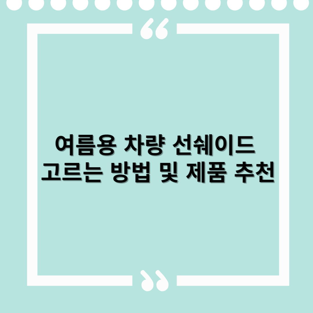 📌 요약 표: 여름 차량 선쉐이드 고르는 법 한눈에 보기