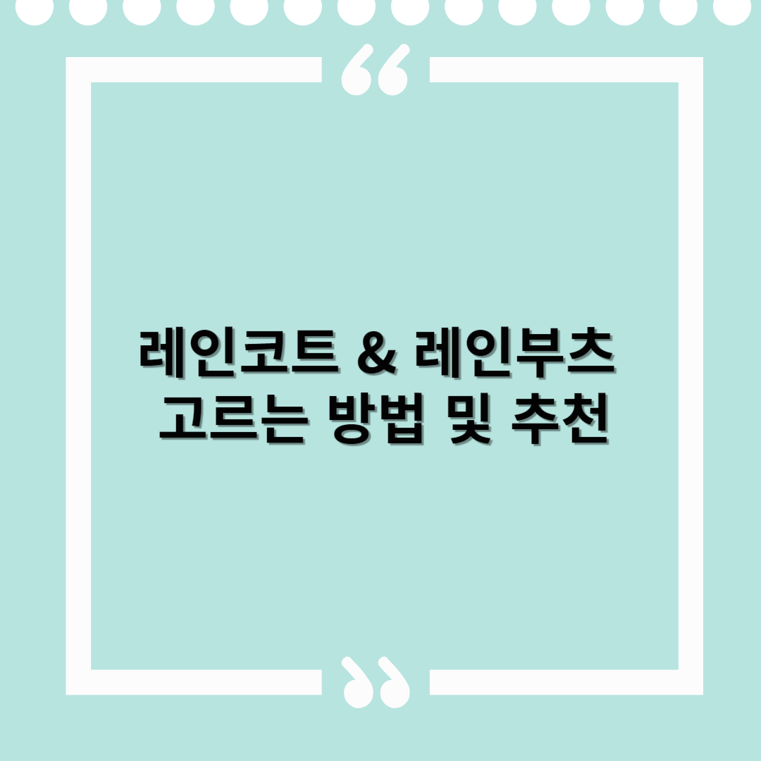 | 3 | 레인코트 & 부츠 세트 활용 팁 | 세트 구매 시 할인 가능, 디자인 통일감, 장마철 실용도 높음 |